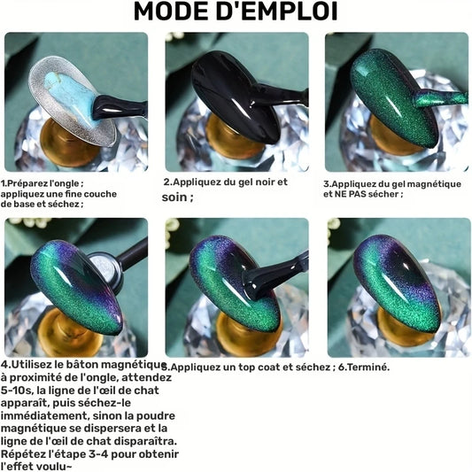 Ensemble 6 Vernis Gel Cat Eye Magnétique – Effet Œil de Chat 9D Holographique UV/LED, 8ml + Aimant Inclus