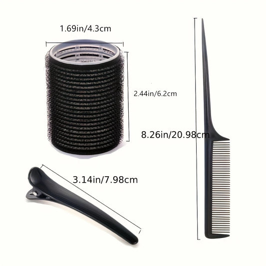 Kit Bigoudis Auto-Agrippants – 12 Rouleaux Volume + 12 Pinces + Peigne à Queue