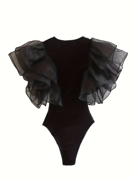 Body Femme Sexy Uni en Tulle & Col Rond