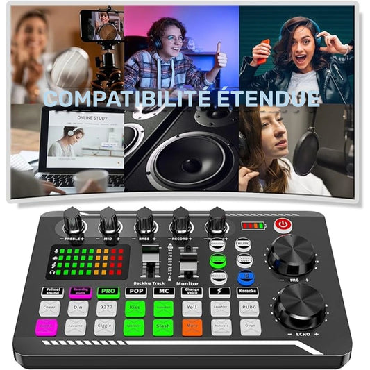 Table de Mixage Audio Portable – Console Sonore USB avec Effets Vocaux et Égaliseur pour Podcast, Musique et Streaming