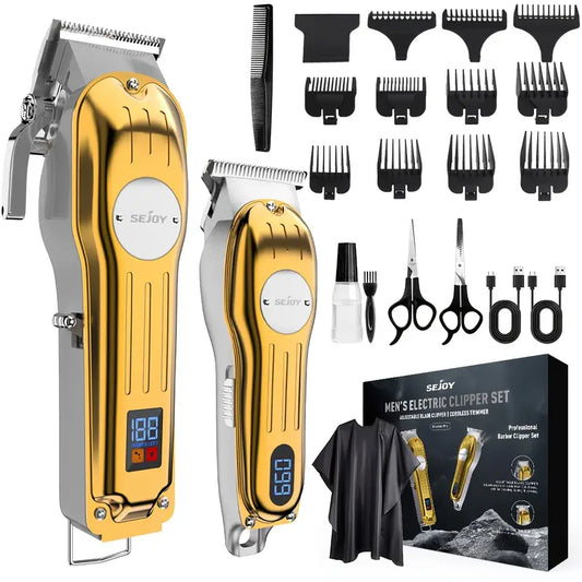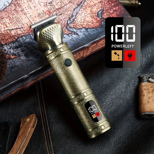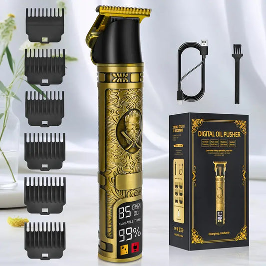 Tondeuse de Précision Électrique Or – Coupe Cheveux & Barbe, Écran Digital LCD, 6 Sabots, Recharge USB, Style VintagePrix habituel €22,99 EURPrix soldé €22,99 EUR Prix habituelPrix unitaire par