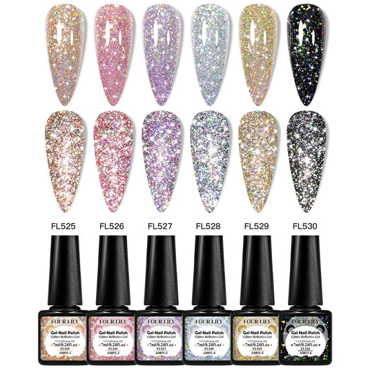 Vernis Gel à Paillettes FOUR LILY – Effet Glitter Intense 7ml FL525–FL530, UV/LED Longue Tenue