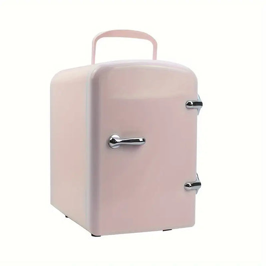Mini Réfrigérateur Rose Rétro 4L – Compact et Portable avec Poignée – Idéal Maquillage, Boissons & Bureau