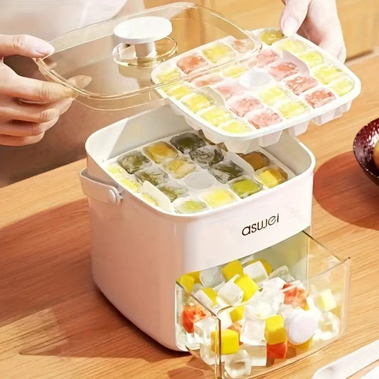 Bac à Glaçons Empilable avec Boîte de Rangement – Moule à Glaçons Colorés avec Couvercle et Presse, Pratique et Compact