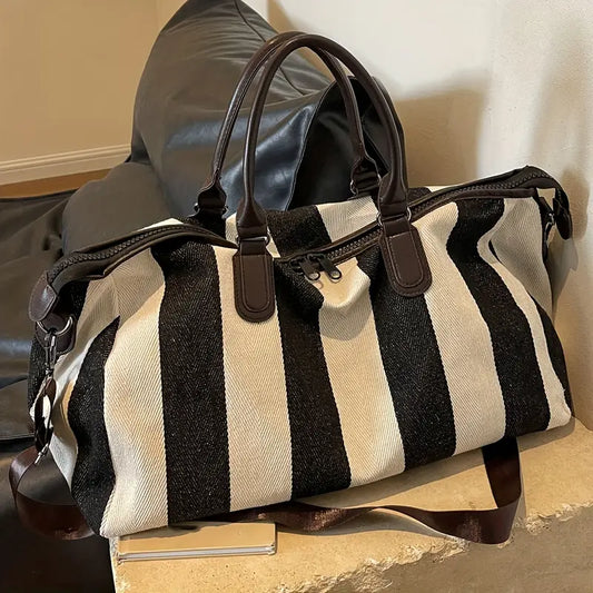 Sac de Voyage Rayé en Tissu Résistant – Cabine Week-End Grande Capacité avec Bandoulière Amovible