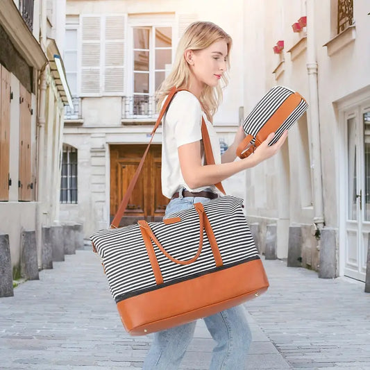 Sac de Voyage Rayé Élégant avec Bandoulière – Cabine Week-End Grande Capacité, Compatible Valise à Roulette