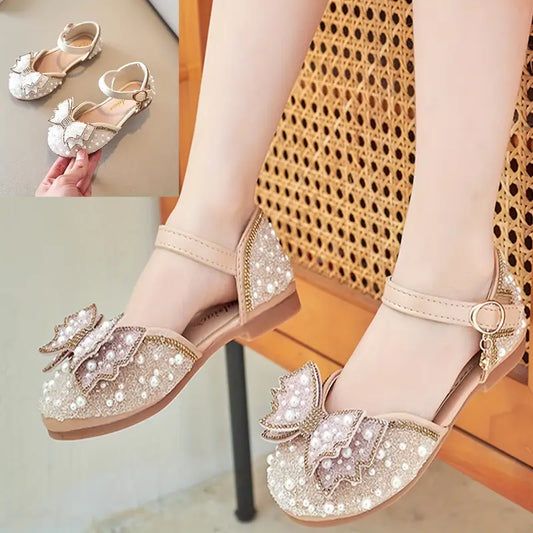 Ballerines fille blanches avec perles et grand nœud – Chaussures élégantes pour mariage, fête et cérémonie