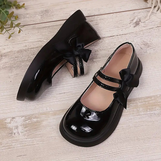 Ballerines fille noires vernies avec nœud élégant – Chaussures habillées confortables