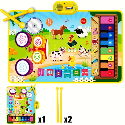 Tapis Musical Éducatif Enfant – Clavier & Batterie Électronique avec Sons d’Animaux, Fonctions Ludiques & Baguettes