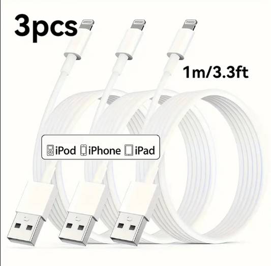 Lot de 3 Câbles Lightning USB – Charge Rapide iPhone/iPad – Longueur Standard et Connecteurs Renforcés