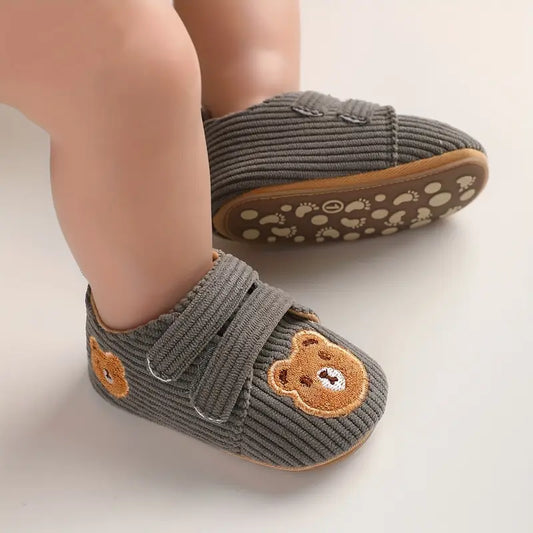 Chaussures bébé garçon en velours côtelé – Chaussons antidérapants avec motif ourson mignon