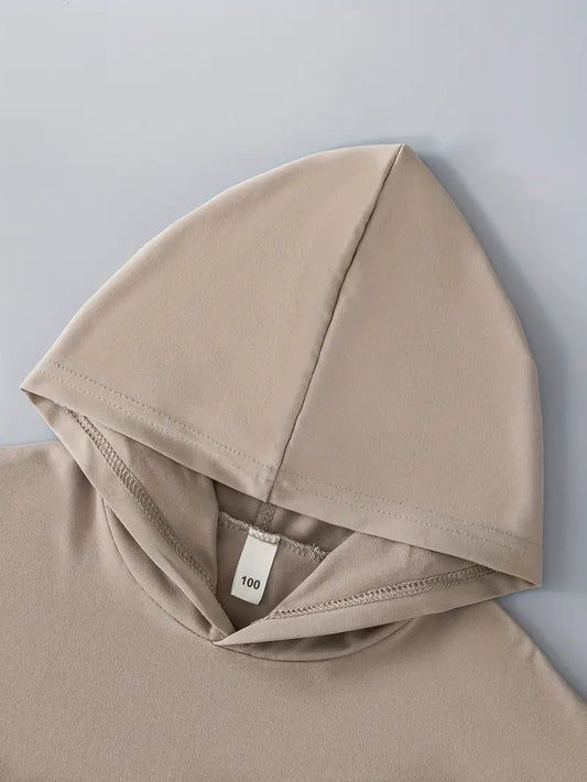 Ensemble chemise garçon à capuche beige – tenue décontractée avec short assorti pour l’été