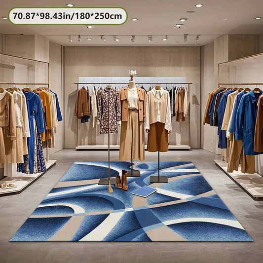 Tapis Moderne Géométrique Bleu – Doux et Élégant pour Salon, Chambre ou Bureau