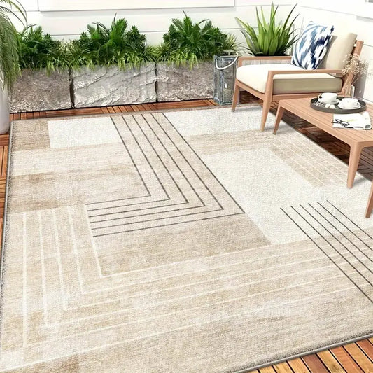 Tapis de Salon et Extérieur Design Moderne – Motifs Géométriques Beiges, Confort et Élégance