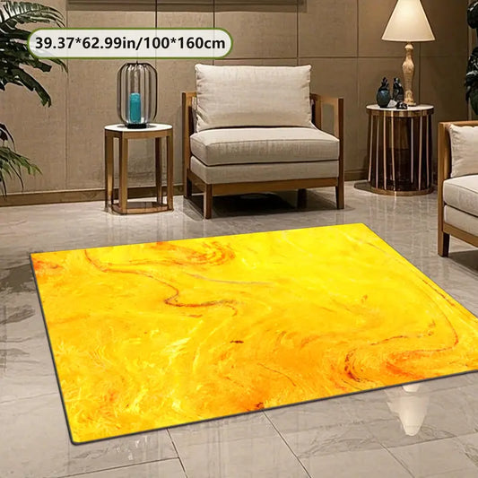 Tapis moderne jaune – Design marbre lumineux pour salon, chambre ou bureau