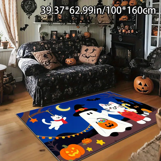 Tapis Halloween – Fantôme et Chat mignon, Décoration de Salon et Chambre pour Fête