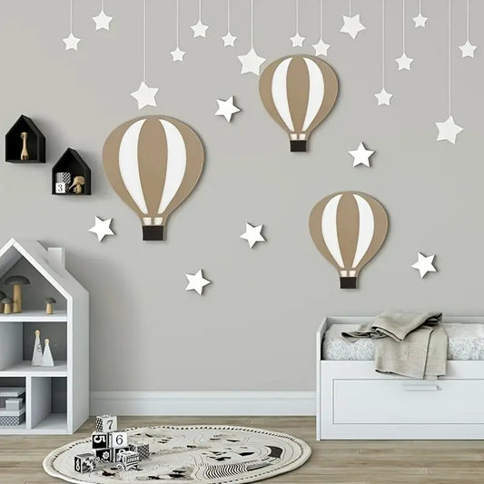 Stickers Muraux Montgolfières et Étoiles – Décoration Adhésive pour Salle de Classe ou Chambre d’Enfant