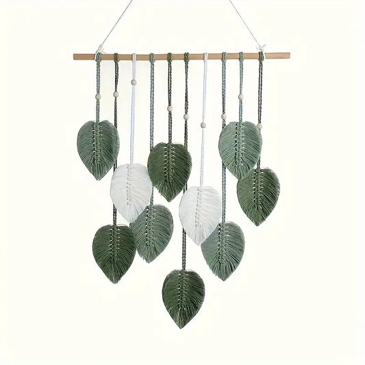 Suspension Murale Bohème en Macramé Feuilles – Déco Naturelle pour Salle de Classe ou Chambre d’Enfant