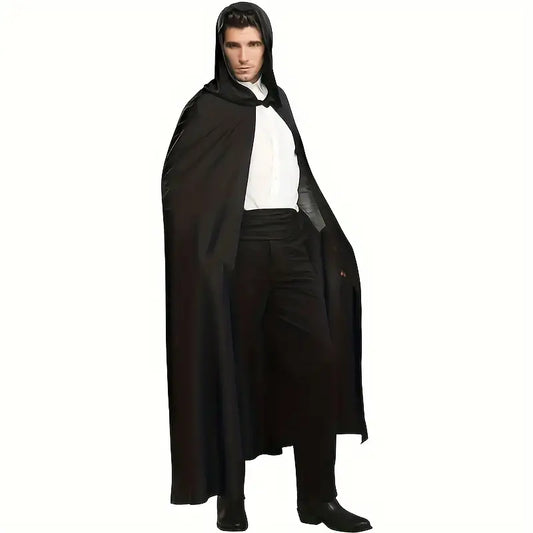 Cape noire à capuche longue – Déguisement sorcier, mage ou Halloween