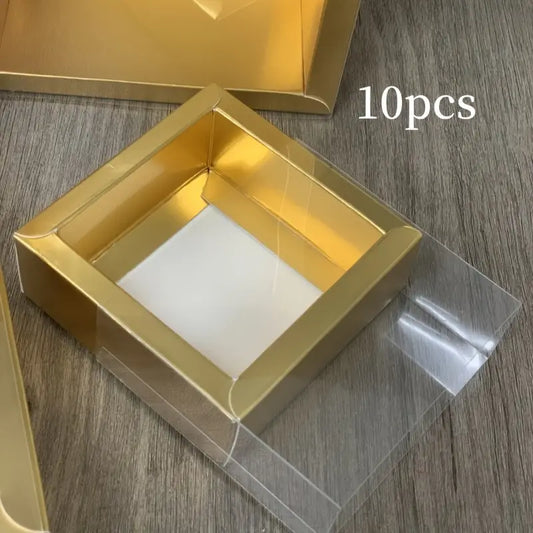 Boîtes cadeaux dorées avec couvercle transparent (lot de 10) – Emballages élégants pour pâtisseries, bijoux ou événements