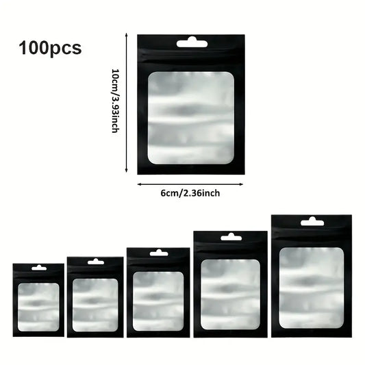 Lot de 100 Sacs Zip Transparente avec Fenêtre – Sachets Refermables Noir Mat 20x30cm pour Emballage et Expédition