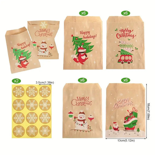 Sachets Cadeaux de Noël Kraft avec Stickers – Sacs Papier Emballage Fêtes et Surprises