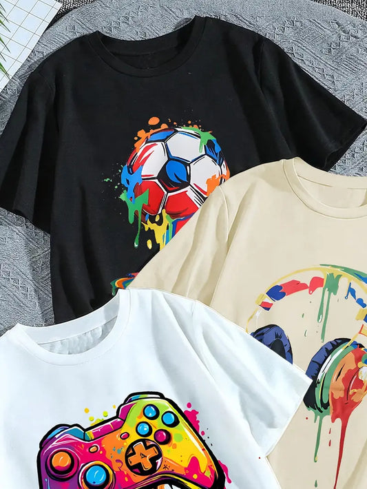 T-shirt Garçon Gamer Blanc – Haut Enfant avec Motif Manette Colorée Street Art