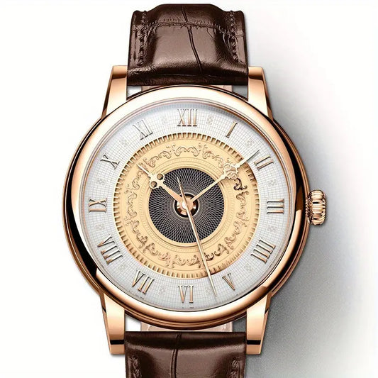 Montre homme élégante à cadran romain – Style classique avec bracelet cuir noir
