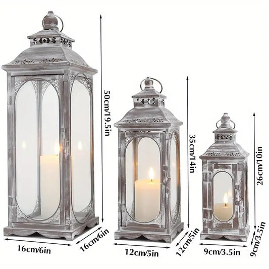 Lanterne décorative extérieure vintage Set de 3 photophores en métal pour jardin, terrasse et balcon