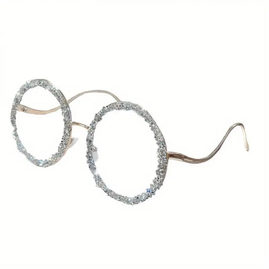 Lunettes femme rondes fantaisie – Monture argentée avec strass scintillants