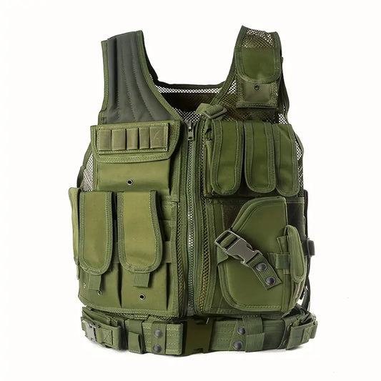 Gilet tactique militaire homme – Multi-poches avec ceinture ajustable pour airsoft, paintball et randonnée