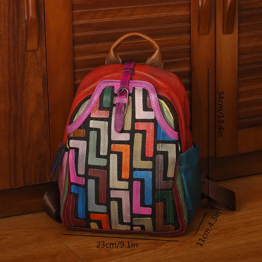 Sac à dos femme en cuir multicolore vintage – Original, artisanal et spacieux