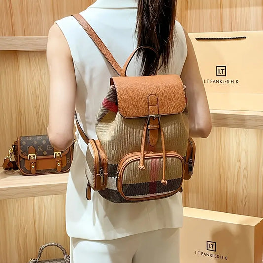 Sac à dos femme en toile et cuir – Élégant, pratique avec poches latérales