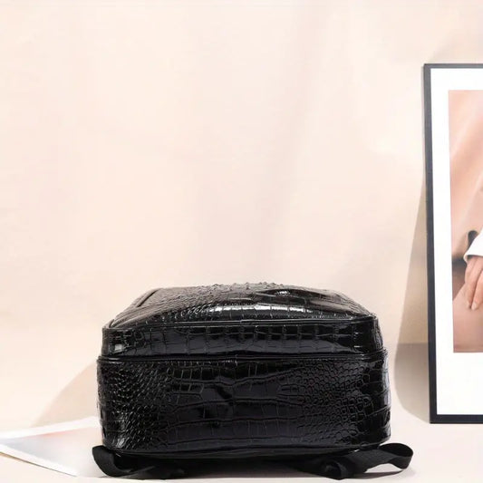 Sac à dos homme en cuir noir motif crocodile – Élégant et spacieux pour affaires ou voyages