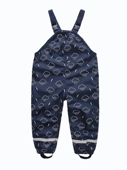 Salopette Imperméable Enfant – Pantalon de Pluie avec Bretelles Motifs Nuages