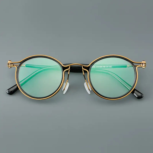 Lunettes homme rondes rétro – Monture dorée et noire élégante avec verres transparents