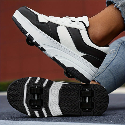Chaussures à Roulettes Enfant – Baskets à Roues Rétractables Rose et Noir, Sport, Glisse et Fun au Quotidien