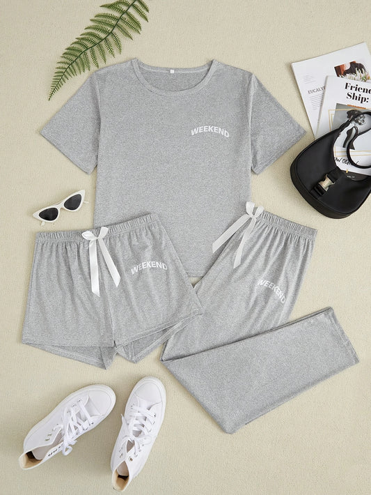Pyjama Femme 3 Pièces Noir – T-Shirt, Short & Pantalon Long, Ensemble Polyvalent et Confortable pour la Nuit