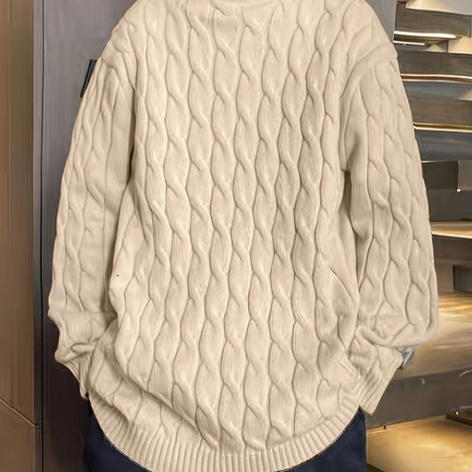 Cardigan En Tricot Torsadé Solide de Grande Taille Pour Hommes