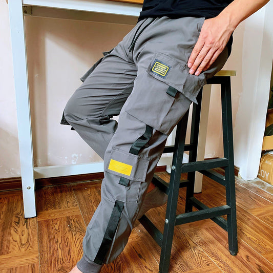 Pantalon cargo style décontracté avec plusieurs poches, ceinture à cordon