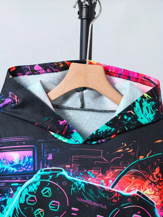 Ensemble Garçon Streetwear Coloré – Sweat à Capuche et Pantalon Motif Peinture Fluo