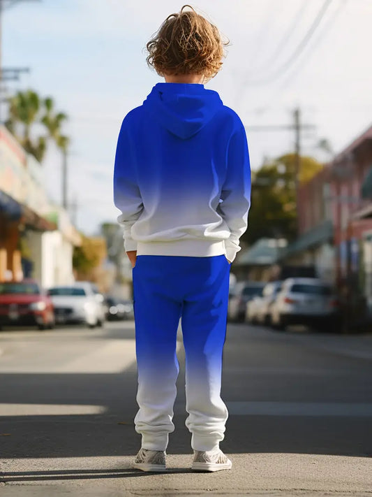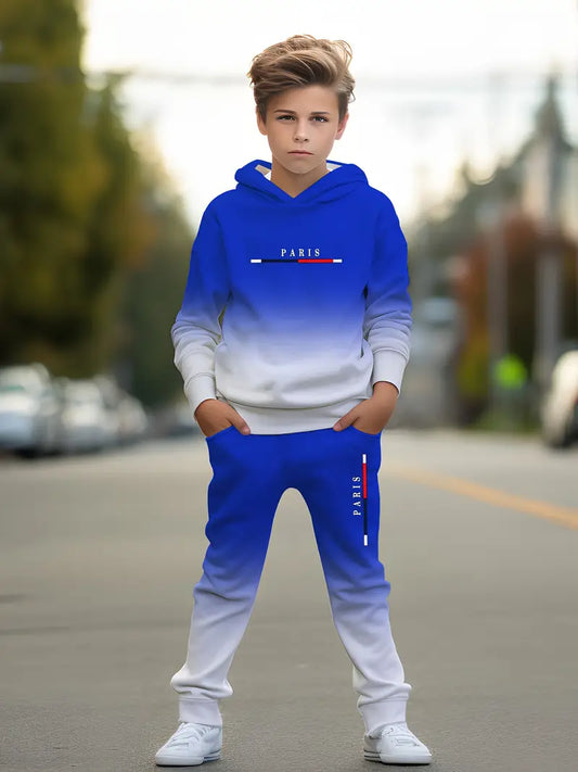 Ensemble Garçon Paris Style Sport – Sweat à Capuche et Jogging Dégradé Bleu Blanc