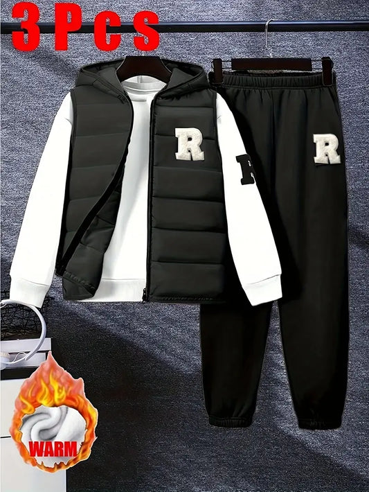Ensemble Garçon 3 Pièces Chaud – Veste Matelassée, Sweat et Pantalon Sport Beige