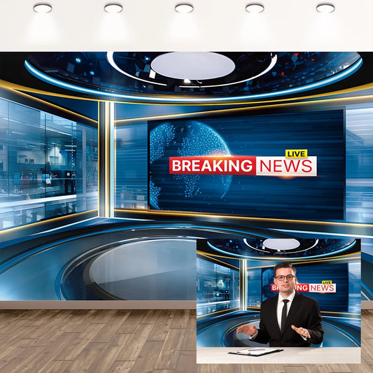 Toile de Fond Studio Breaking News – Décor Professionnel pour Vidéos, Lives & Interviews