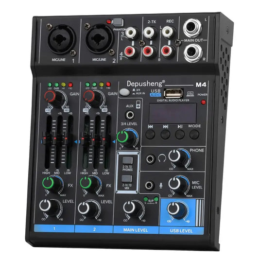 Table de Mixage Audio USB Depusheng G6 – 4/6 Canaux avec Effets, Interface Son & Alim Phantom 48V