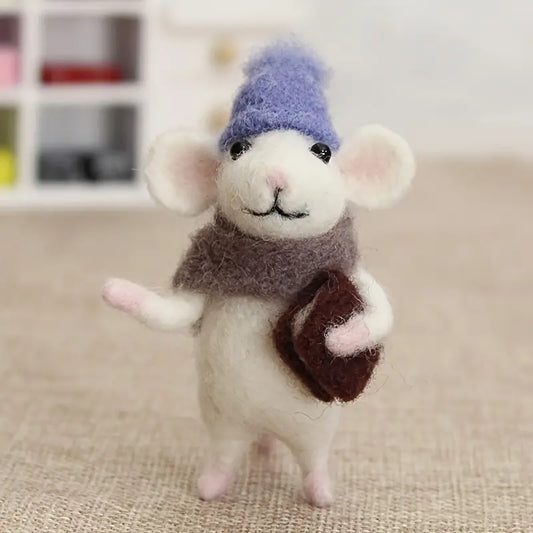 Souris en Laine Feutrée Fait Main – Figurine Décorative Tricotée avec Bonnet et Écharpe