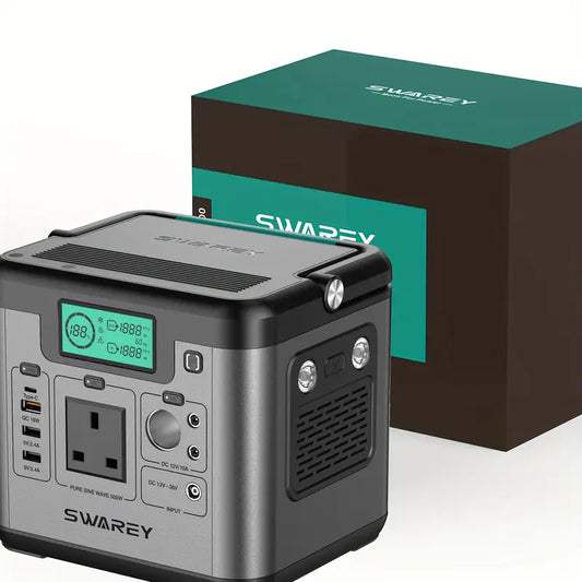 Station d’alimentation portable Swarey 500W – Générateur rechargeable compact avec prises USB, AC et lampe LED intégrée