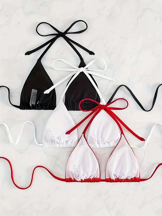 Haut de Bikini Femme Triangle – Lot de Basiques Indémodables à Nouer (Noir, Blanc, Rouge)