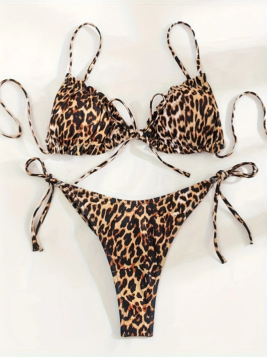 Haut de Bikini Femme Triangle – Imprimé Léopard, Style Sauvage & Bretelles à Nouer