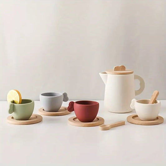Service à Thé en Bois pour Enfants – Jouet d’Imitation Montessori avec Tasses et Théière Éducatives